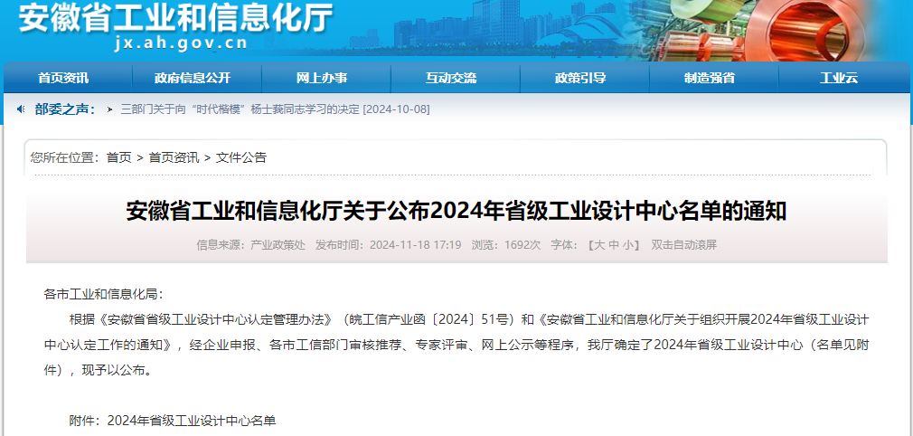 近日,根據(jù)《安徽省省級工業(yè)設計中心認定管理辦法》(皖工信產業(yè)函〔2024〕51號)和《安徽省工業(yè)和信息化廳關于組織開展2024年省級工業(yè)設計中心認定工作的通知》,經企業(yè)申報、市工信部門審核推薦、專家評審、網上公示等程序,恒宇環(huán)保被認定為2024年安徽省工業(yè)設計中心,這不但是我公司在科研平臺建設方面榮獲的又一重要榮譽,而且是太和縣首家省級工業(yè)設計中心。